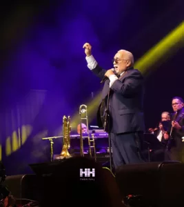 El veterano trompetista agradeció al público por estar presente, bromeando sobre el hecho de que muchos habían decidido acompañarlo esa noche aún  cuando coincidía con un concierto de Bad Bunny. Entre risas y aplausos, extendió su gratitud y culminó con un emotivo “¡Dios bendiga a Puerto Rico!”, que desató una ovación de pie.