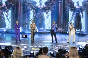 Igualmente, los participantes Cristian, Dionicio, Kevin y Gustavo presentaron el número grupal “Aquí Estoy Yo” de Luis Fonsi, Aleks Syntek, Noel Schajris y David Bisbal.